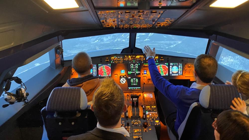 Le cockpit est un simulateur de vol. Mais quel simulateur! Un modèle